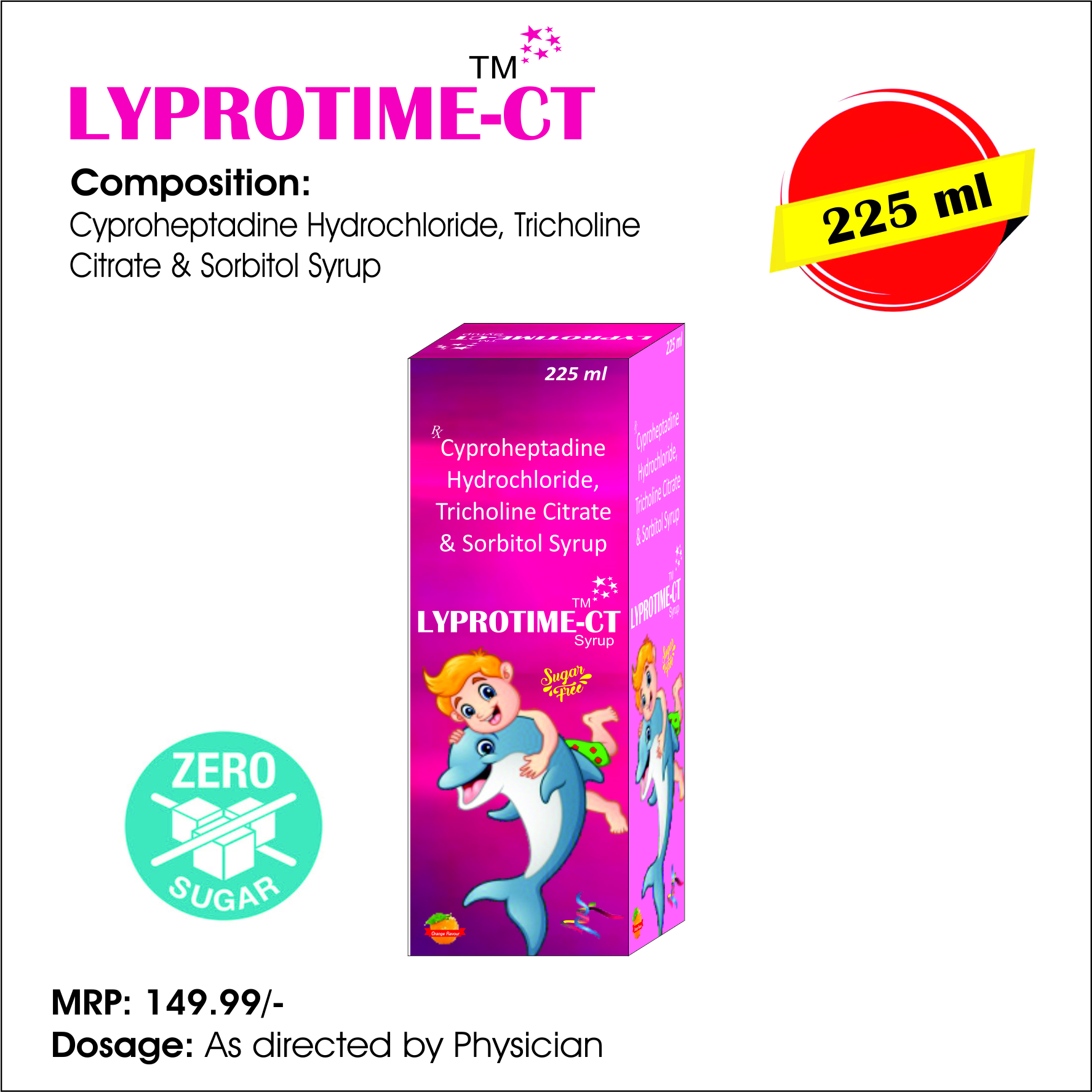 LYPROTIME-CT is a sugar-free, combination syrup primarily used as an appetite stimulant. It is designed to help individuals with a loss of appetite return to normal eating habits and can assist in healthy weight gain.